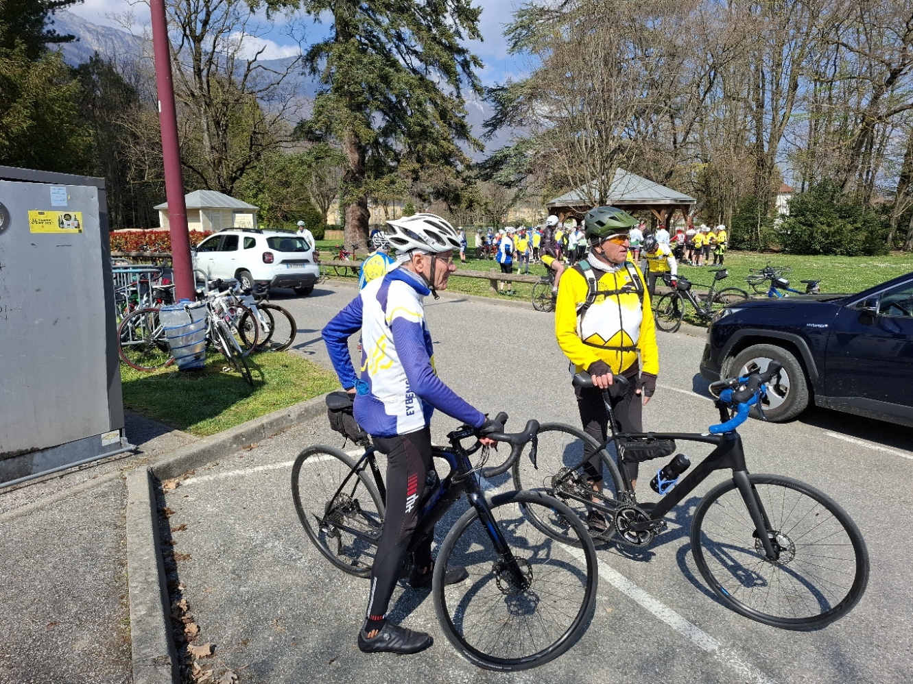 13 Cyclos au départ : Claude ,Laure ,Chantal,Christiane,Marie B,Jacques ,Thomas ,Michel T ,Michel P , Gilles, Alain ,Gerard et Bibi.Gilles à fait le 40 Km ,Jacques le plus grand parcours puis deux groupes sur le 60 : Claude ,Chantal, Christiane,Thomas,Michel T & P , Alain et Gerard , puis un deuxiéme groupe : Laure , Marie B ,et Bibi.Ils ont eu 315 participants .